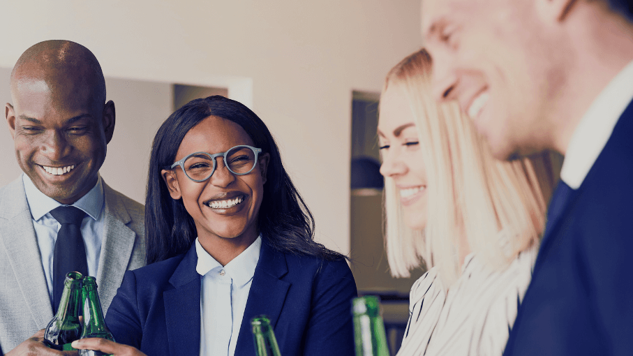 4 Personen trinnken gemeinsam Bier