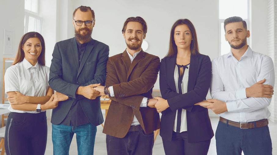 4 Personen halten sich an den Händen